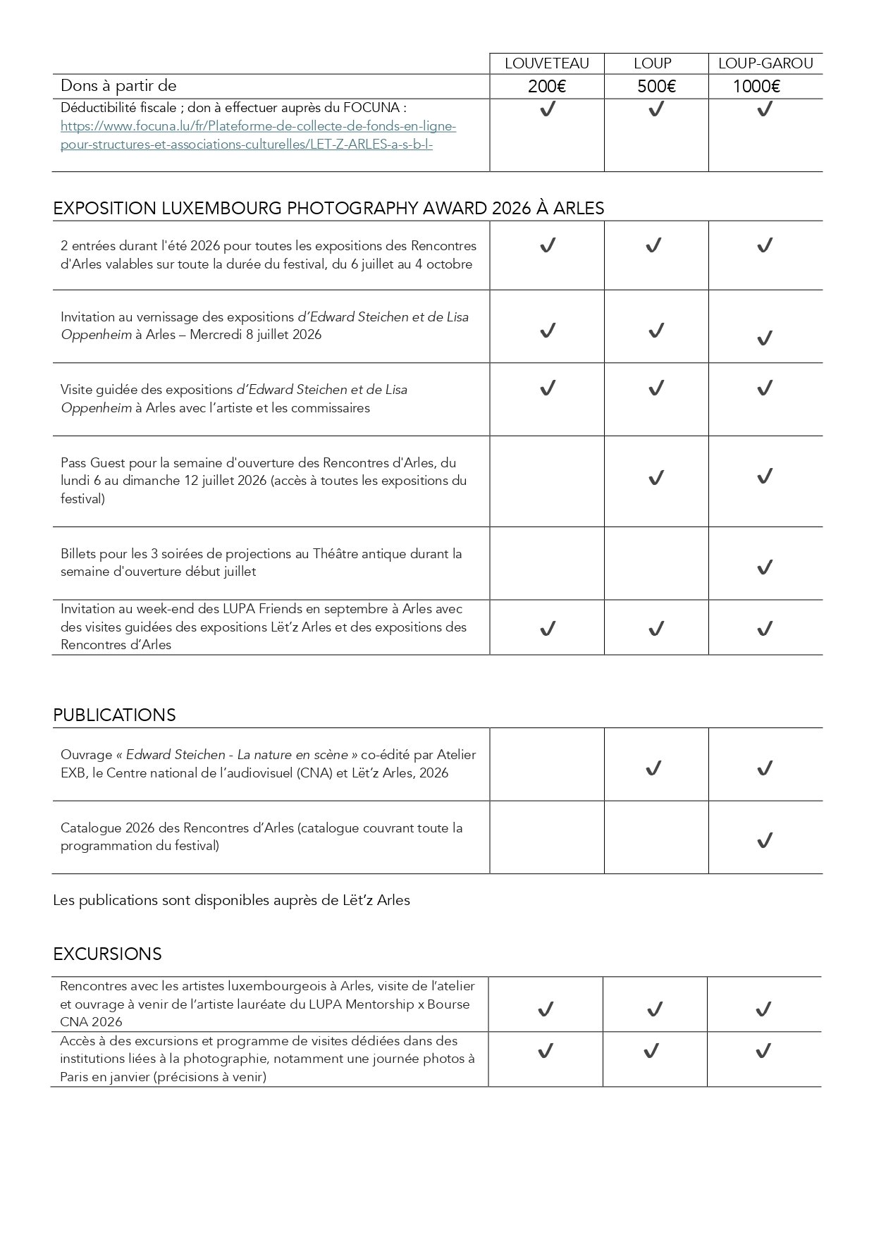 participer aux programmes de visites et rencontres exclusives à Arles et au Luxembourg